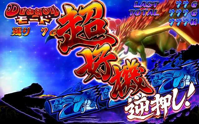 青7揃いはドラゴンモード中なら30G以上の上乗せ、超天RUSH中だと天RUSHストックと役割が違うが、どちらでも上乗せの0G連である「昇龍チャンス」は発生する可能性あり。