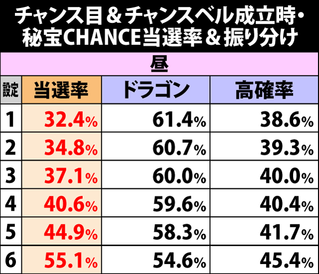 ■チャンス目&チャンスベル成立時・秘宝CHANCE当選率