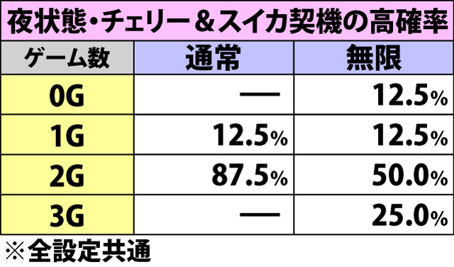 内部状態によっても当選率は変化し、高確滞在時はチェリーでも突入抽選が行われる。
