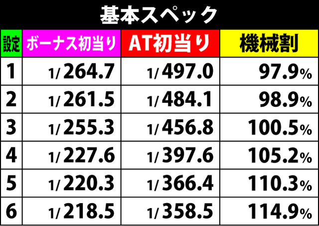 [ボーナス性能]30G継続・純増約2.5枚/G(AT中は純増約5.0枚/G)